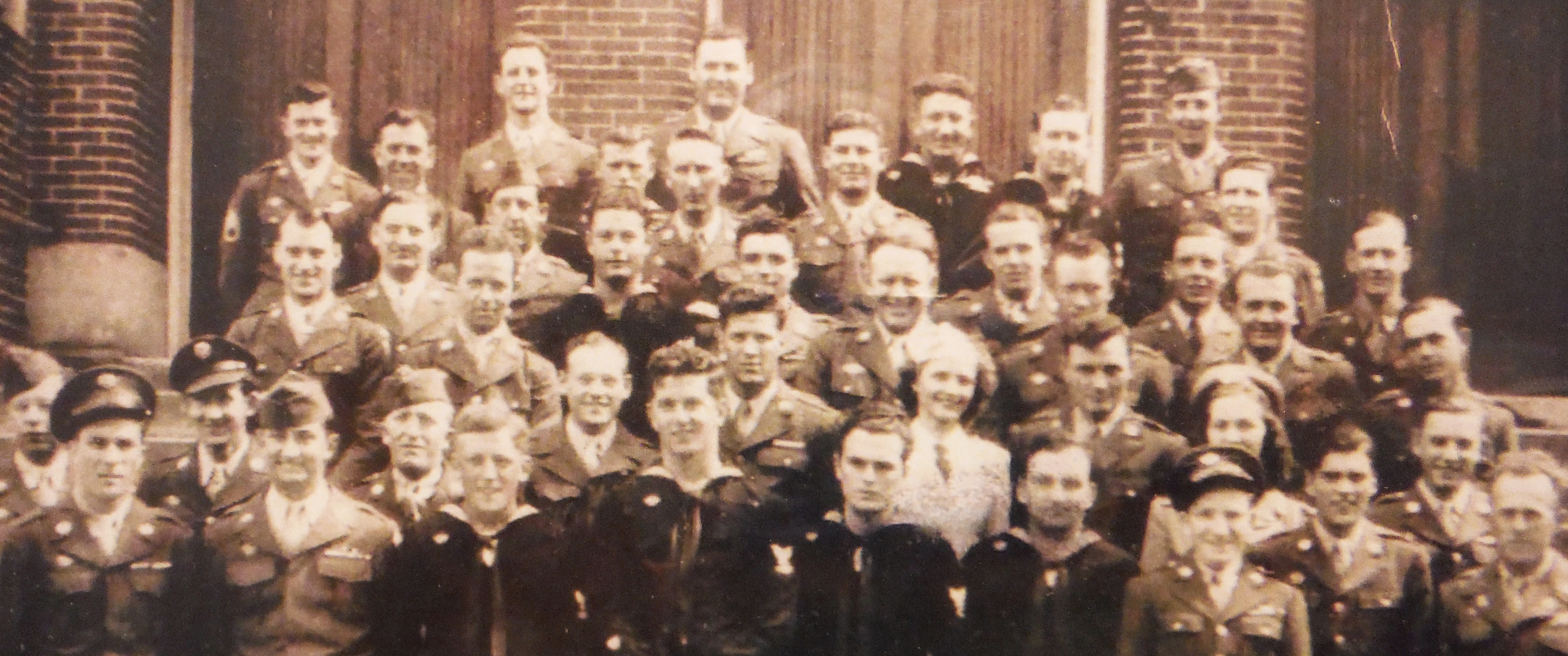 This photograph was taken in front of St. Joseph's Church in Bonneauville, PA about 1945. The photo includes most of the men and women of the town who served in WWII. Theron Little died during combat. Joseph Weaver died overseas as a result of an accident.