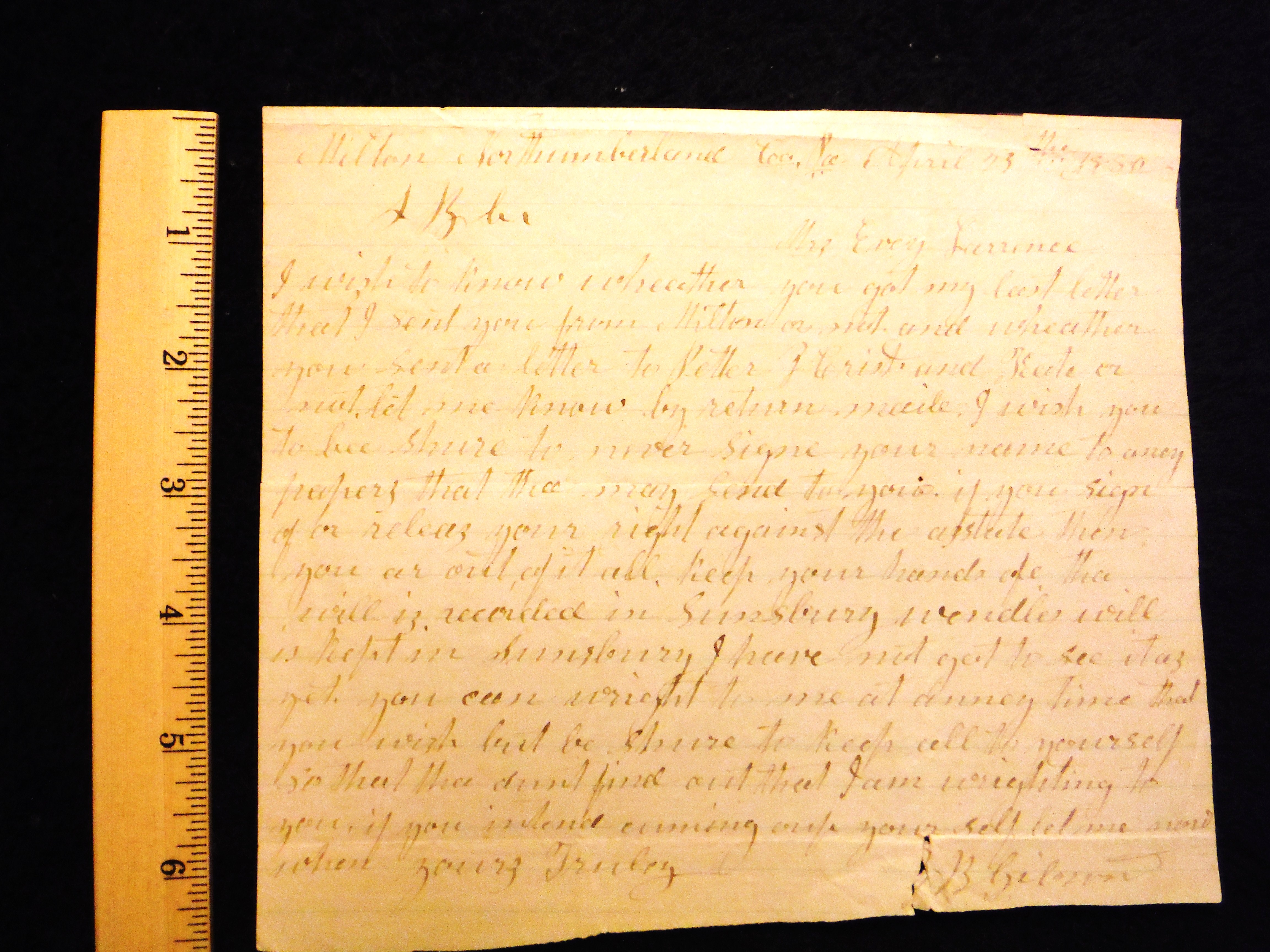 Letter; "Milton, Northumberland County, April 23, 1880, to Mrs. Emory Laurence.