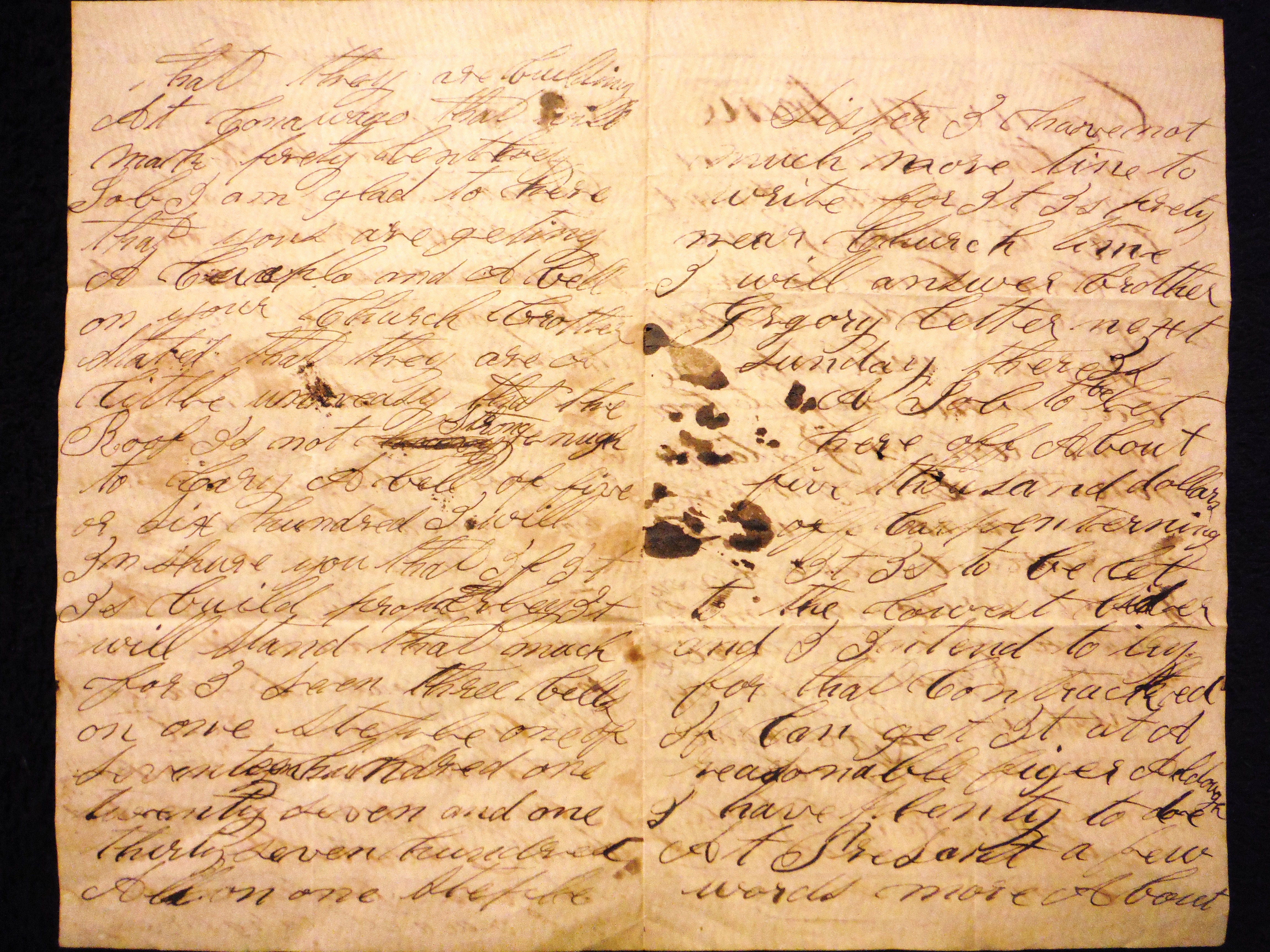 Letter; Francis Dellone, Conewago, Church Bell. 1860.