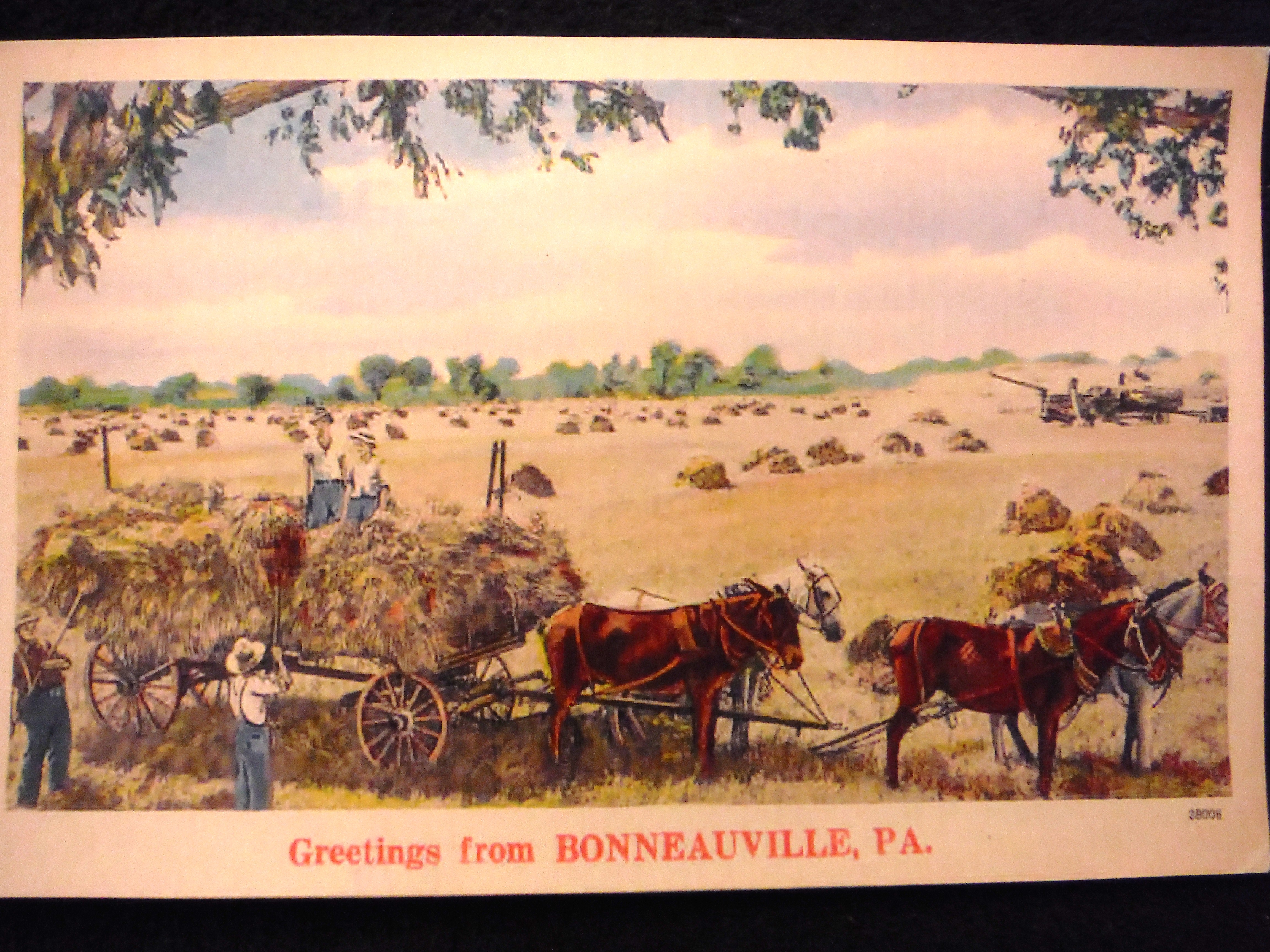 Produced by N.Y.C.E. Postcard Company, this card is from the Frederick Golden Collection. The printer produced generic scenes and peddled them from town to town. The most appropriate scene to the town (lake, river, woods, mountains, etc. was selected by the seller). The town name was then added in red. A minimum of 100 cards had to be ordered per printing.