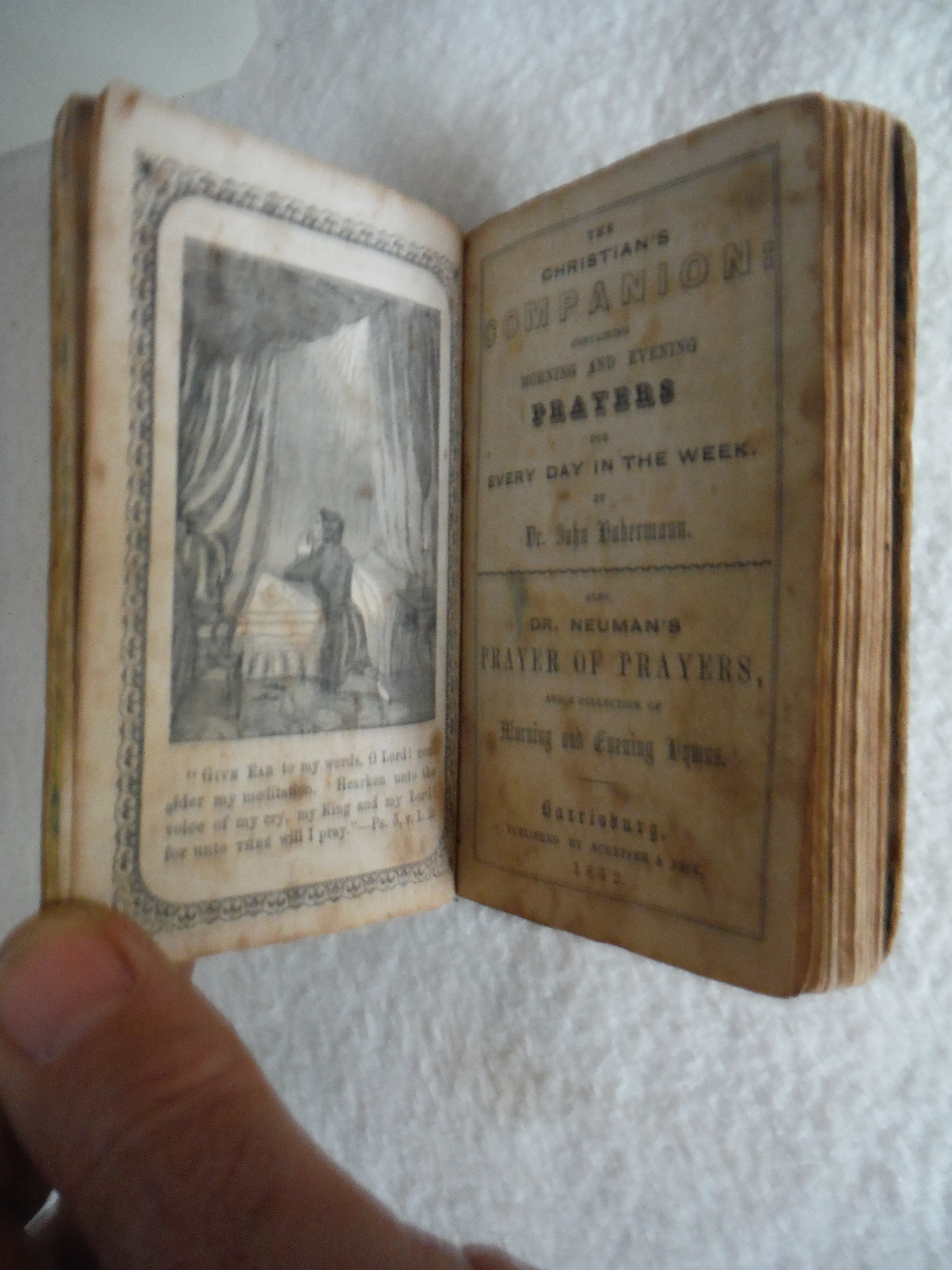 "Morning and evening prayers for every day of the week." 144 pages. Signed in pencil on the inside leaf; _____? Klinefelter. (first name unreadable.)