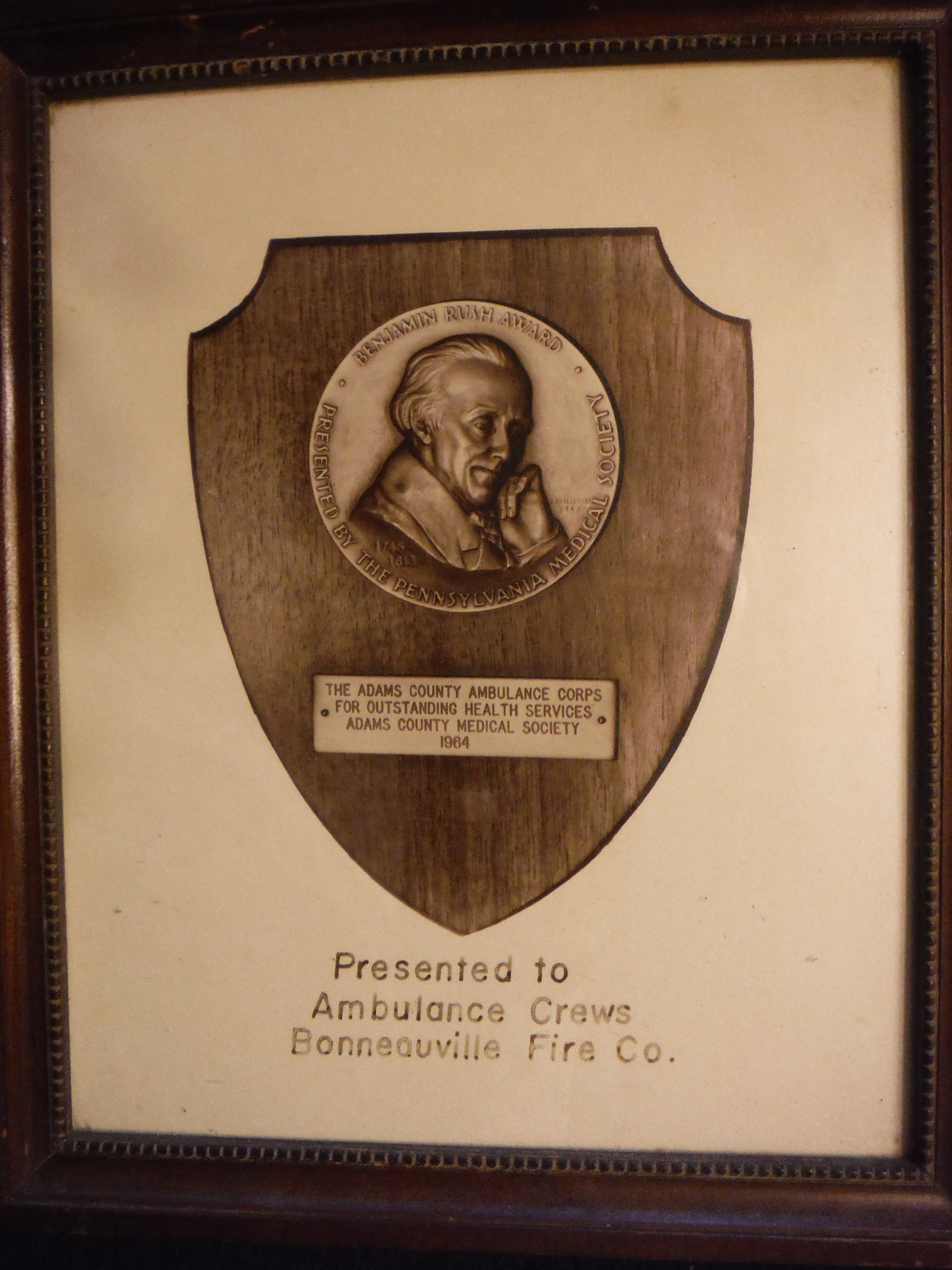 "Presented to Ambulance Crews Bonneauville Fire Co."