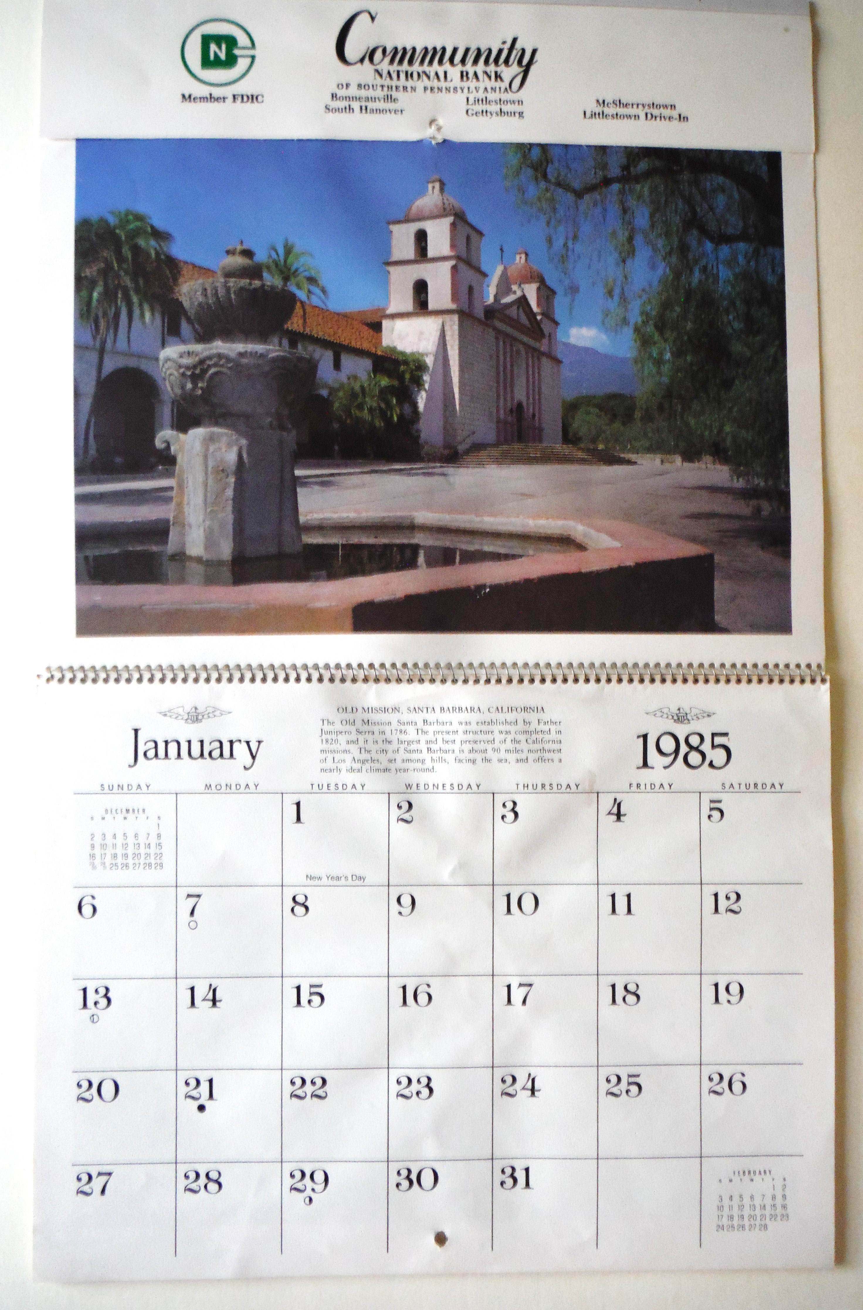 Calendar; 1985, Community National Bank, Bonneauville, PA.