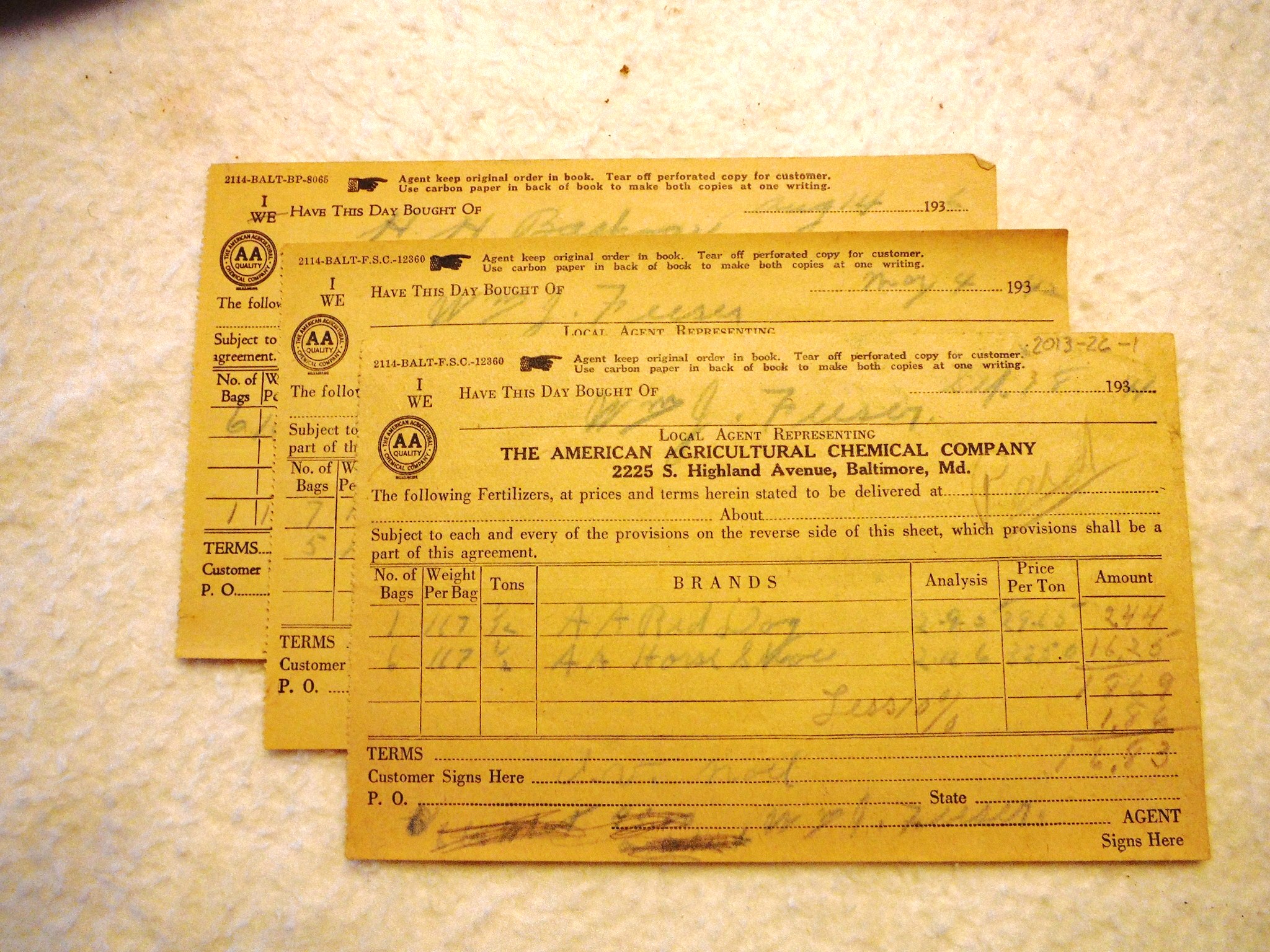 Receipts; Three Receipts from American Agricultural Chemical Co., Baltimore, Md