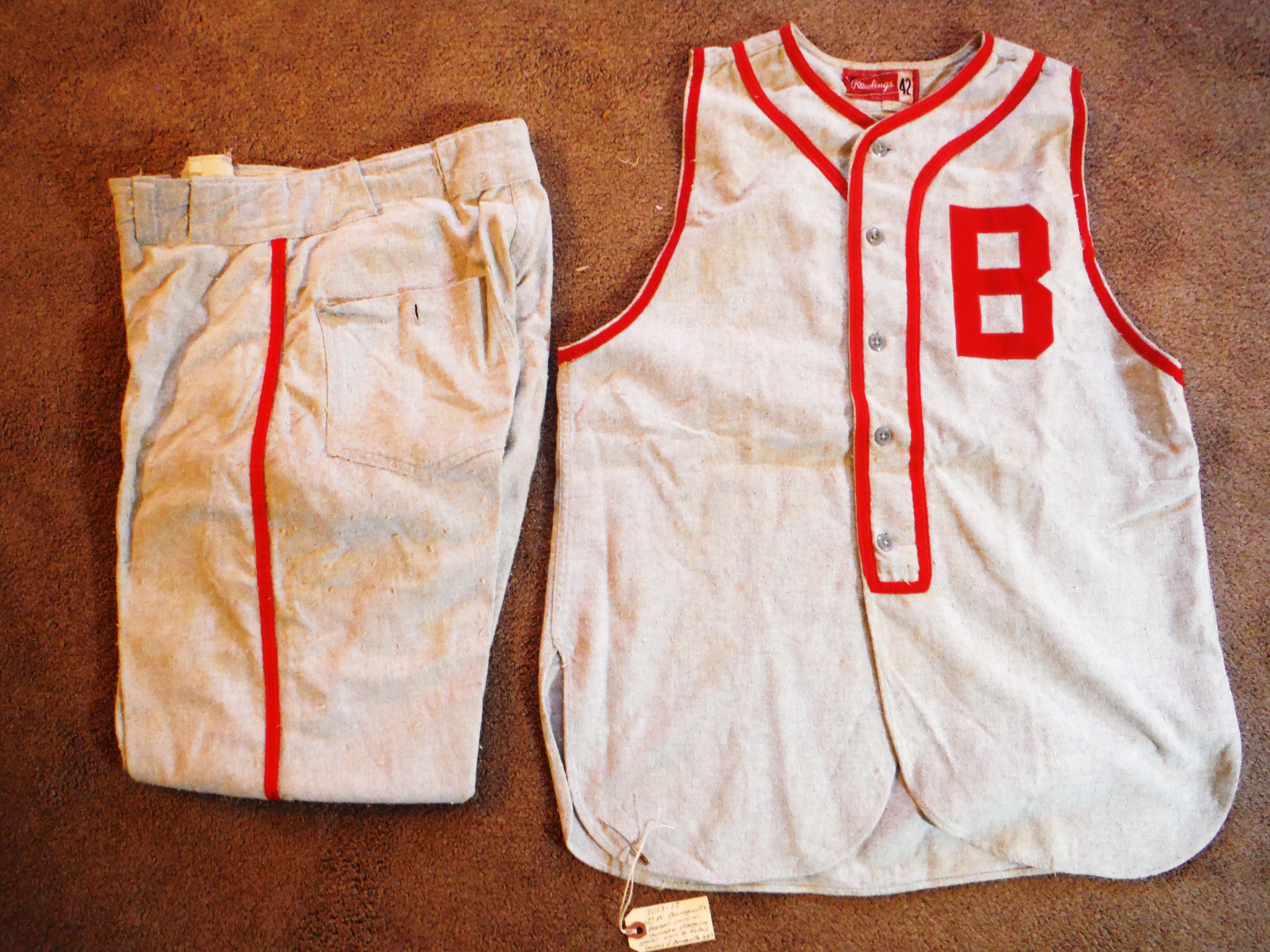 The team's sponsor was G. R. Showvaker Plastering Co. of Bonneauville, PA. Home games were played at the Catholic War Veterans Field in Bonneauville. The uniform is light grey with red lettering. The "B" logo represents the Bonneauville, PA. team.