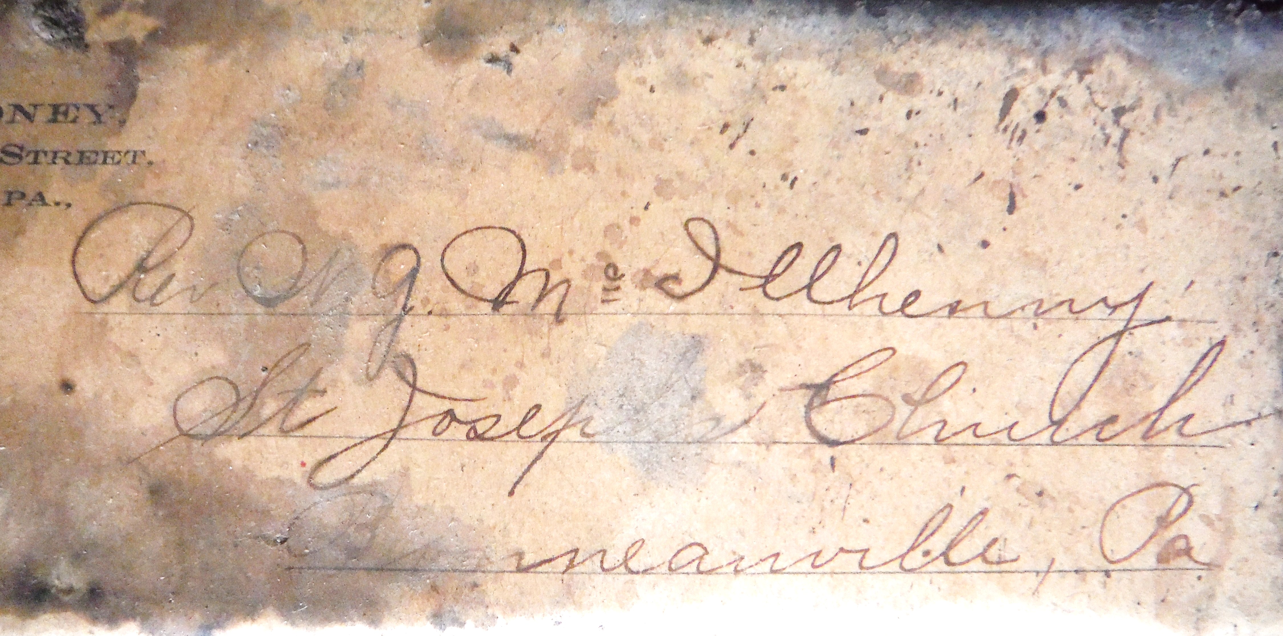 I. Package: James Moroney, Philadelphia, to Rev. Wm. Mcillhenny [sic].
