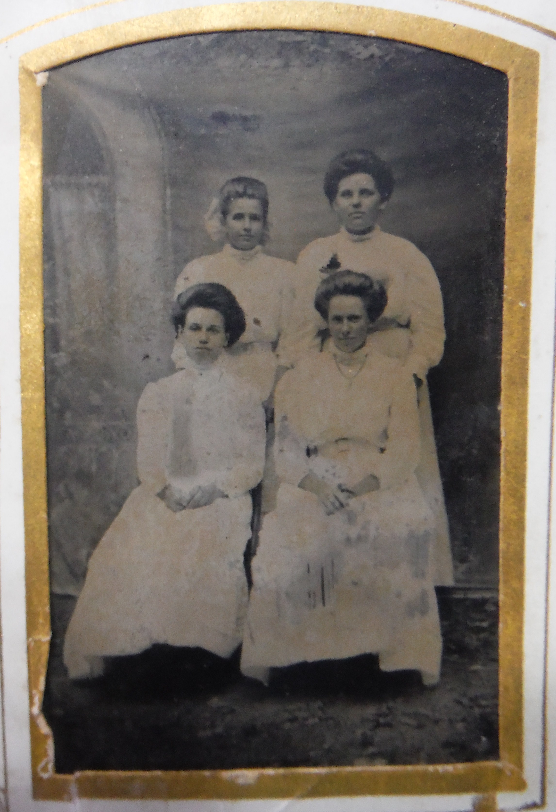 Note: See Cat. No. 2001-01. The original of that photograph is housed at the Adams County Historic Society in Gettysburg, PA. It is one of the precious few Bonneauville related documents on file at the society. The only text on the picture is the handwritten words "Bonneauville Girls." Permission to use the photo in the book "Bonneauville History and Lore" was obtained in 2001. Found thirteen years later, the photo below of four ladies in white dresses is the first positive link as to the identities of any of the individuals in the "Bonneauville Girls" photo.