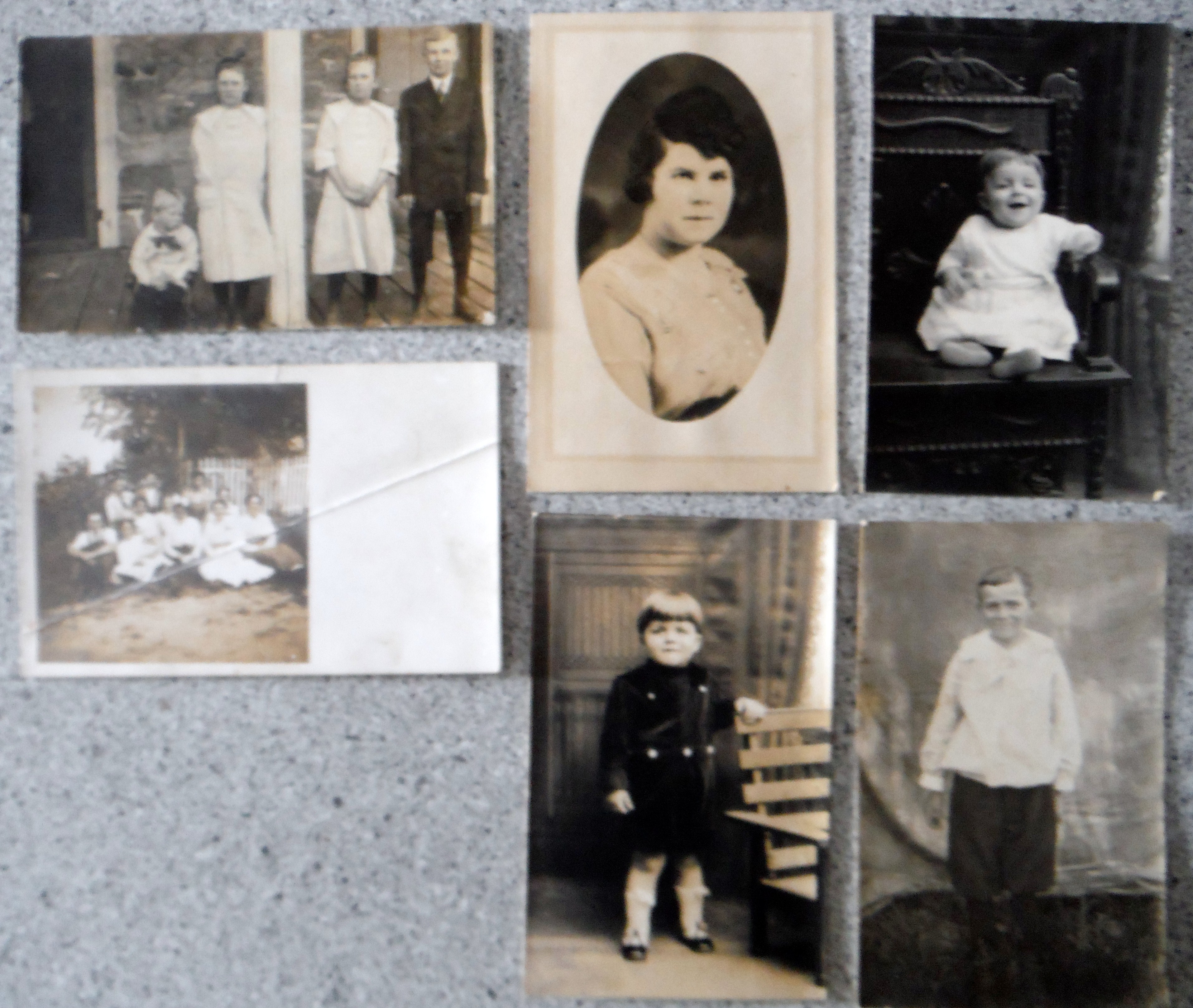 This collection of twelve portrait real photo postcards were grouped with Kuhn and Eck family photo albums when found. (Ref Cat. No's: 2014-08AA and 2014-08AB.) All hand-written markings on backs of photos (which are minimal,) are in quotes and italicized below.