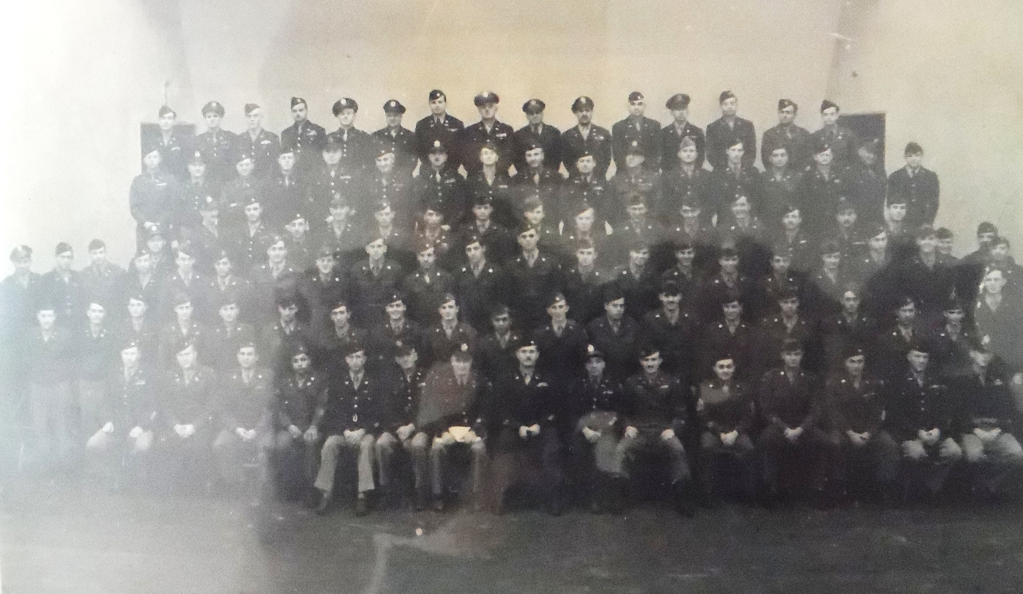 Large group of military men in uniform. Unidentified group, probably WWII.
