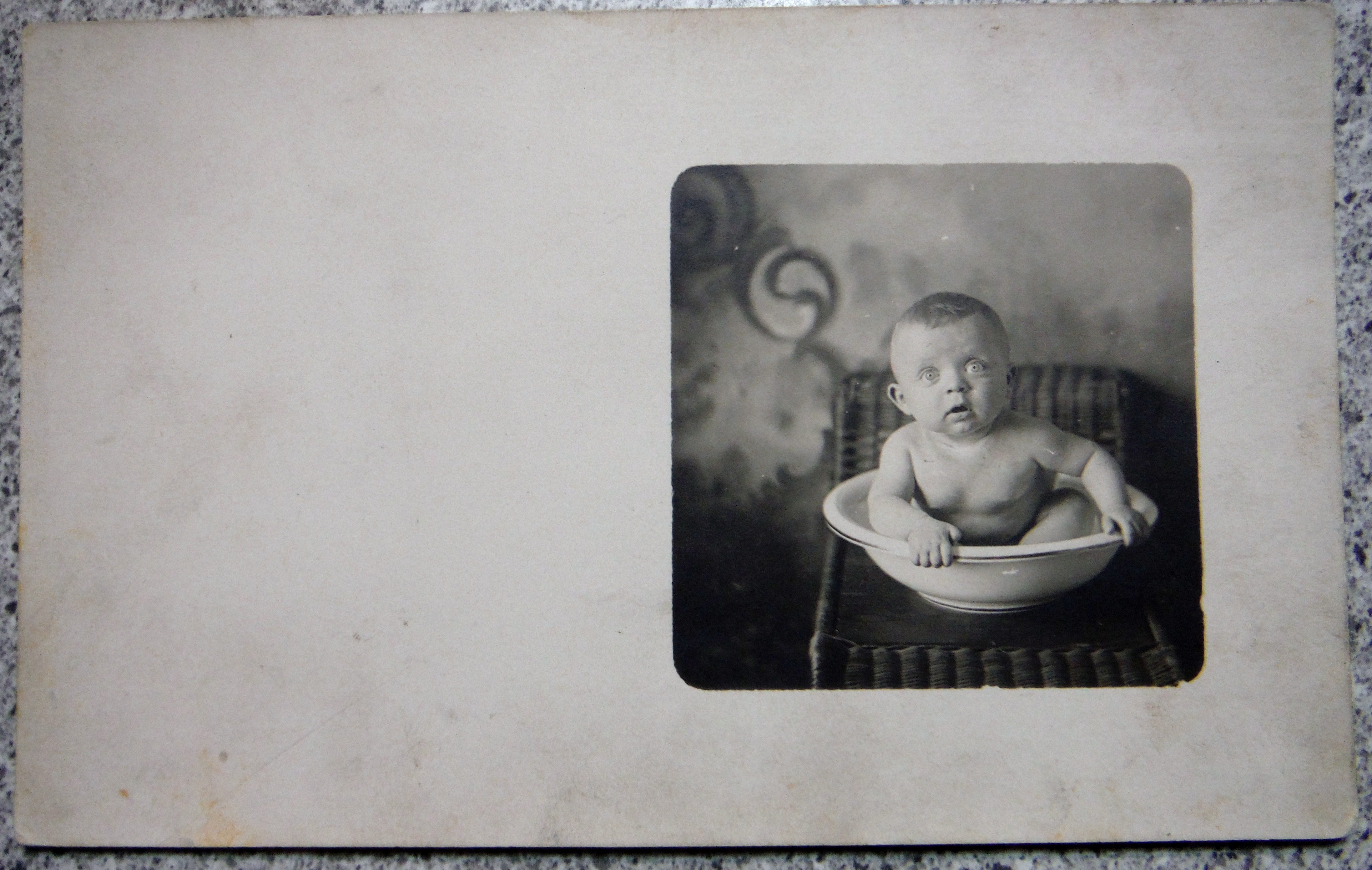 In the first decade of the 20th Century the Kodak Company introduced a camera that allowed customers to shoot black and white photographs that could be printed directly onto photo paper - with a postcard format on back. The printing process was performed at local photograph studios. Unlike commercially printed cards, each real photo shot was one of a kind (but could be printed several times). This photo appears to have been taken with a standard format Kodak Brownie camera (or similar model,)and added to a postcard blank at a local photo studio.