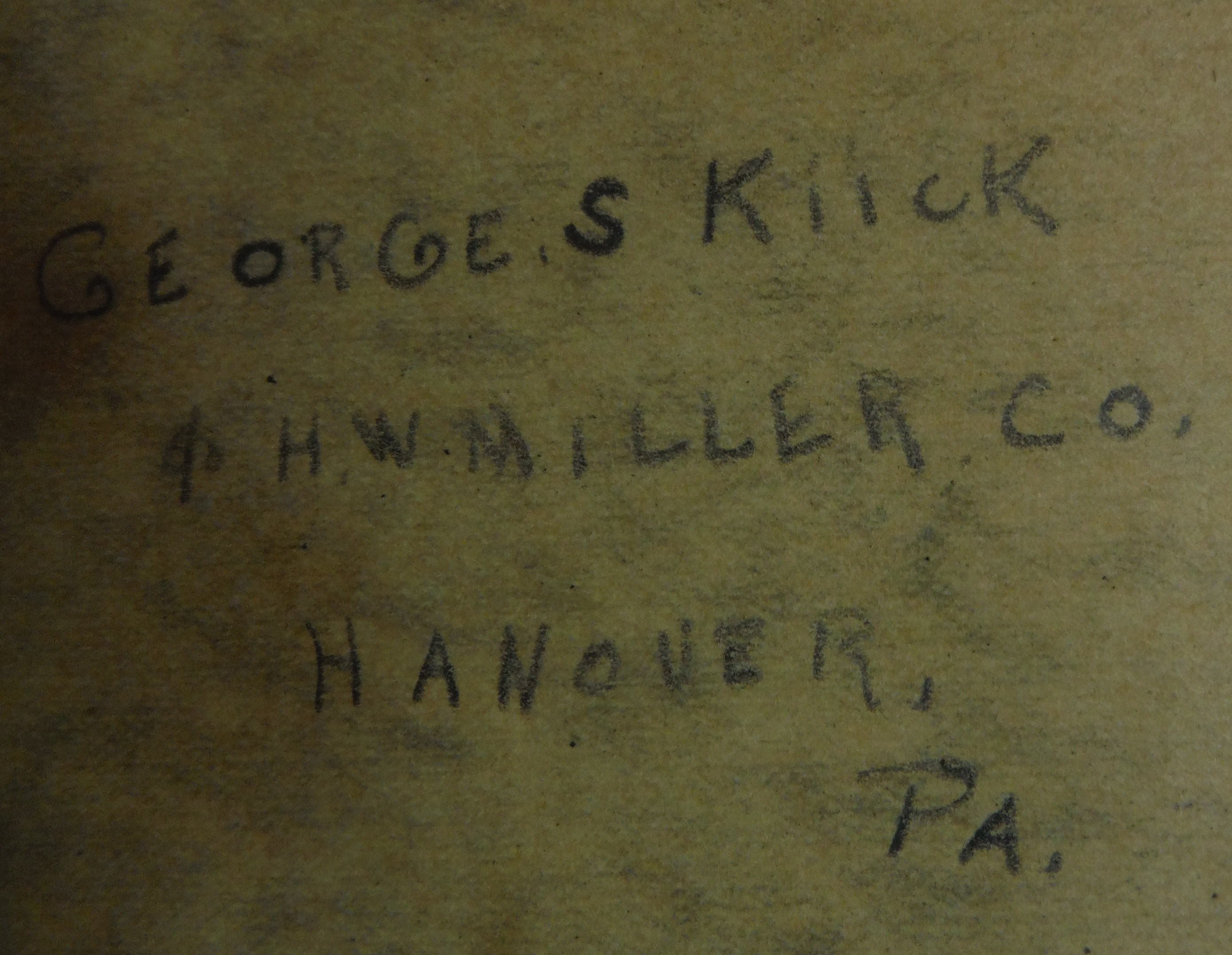 This log book from George S. Kiick and H. W. Miller Co., Hanover PA meticulously lists each item with which the company dealt. Whether this business was a general store, a distribution business or other is unknown. The well worn 6" x 8" leather bound binder was supplied by J. W. Fischer & Co., Hanover, PA.