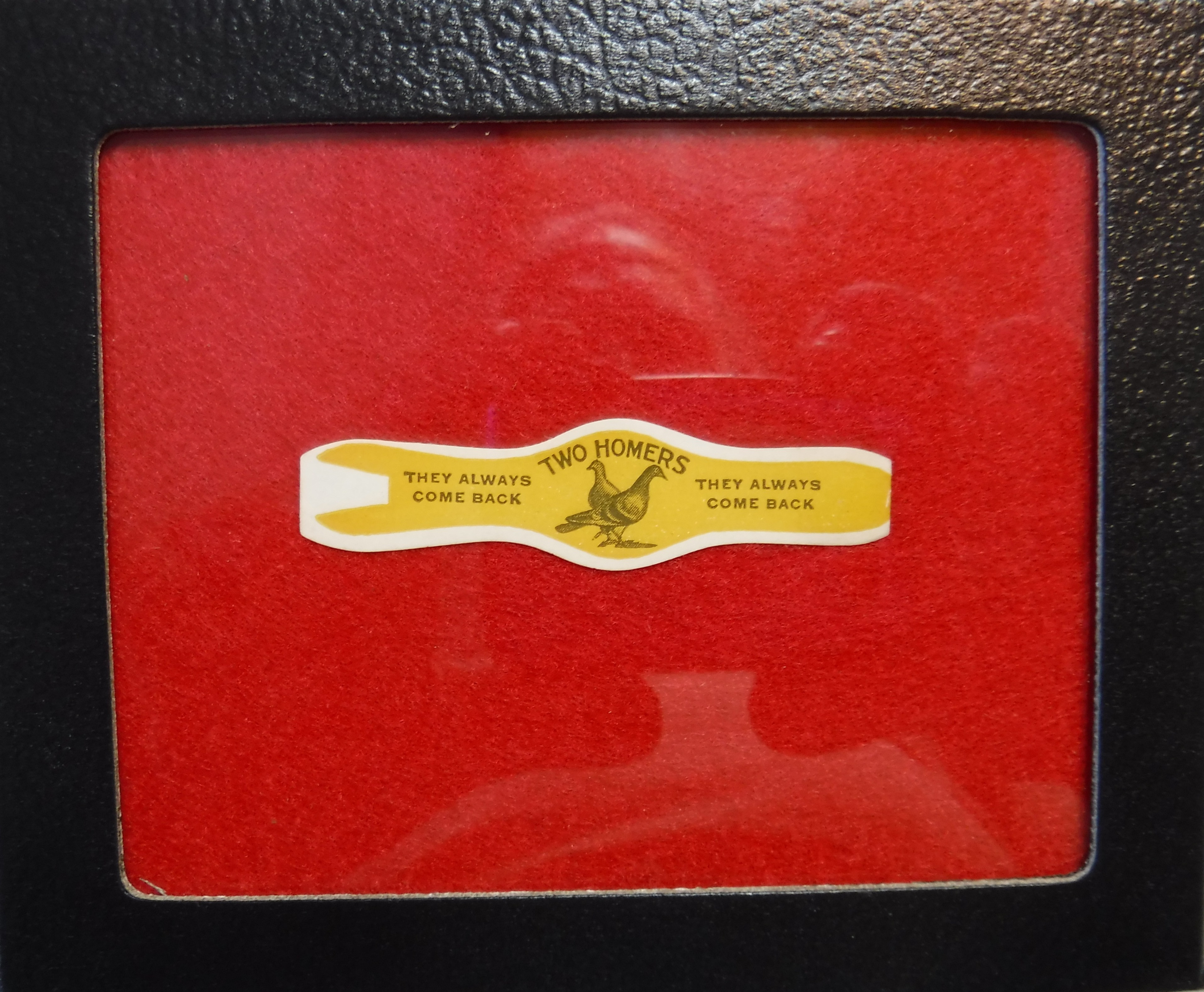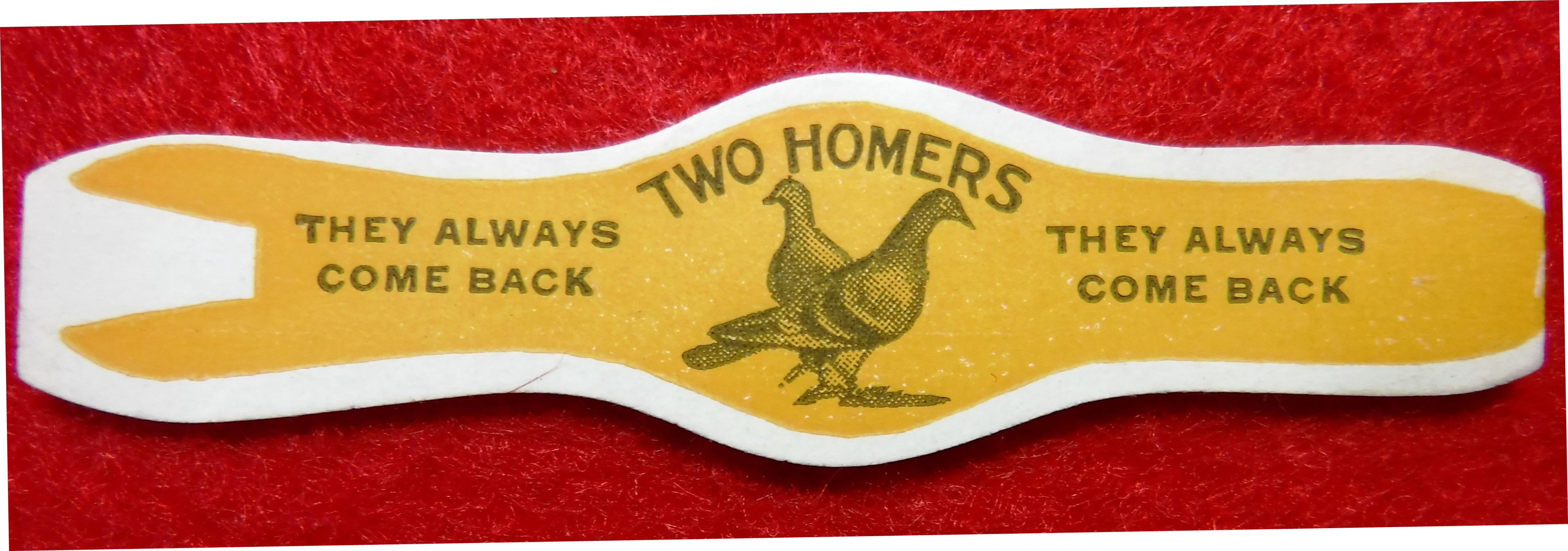 Text on this cigar band reads: "Two Homers. They always come back. They always come back." These bands were produced during the golden age of cigar label art (1880's to 1930's). Two Homers was a brand produced by The Golden Famly of Bonneauville, PA. The Goldens were best known for their Blue Ribbon cigar brand.