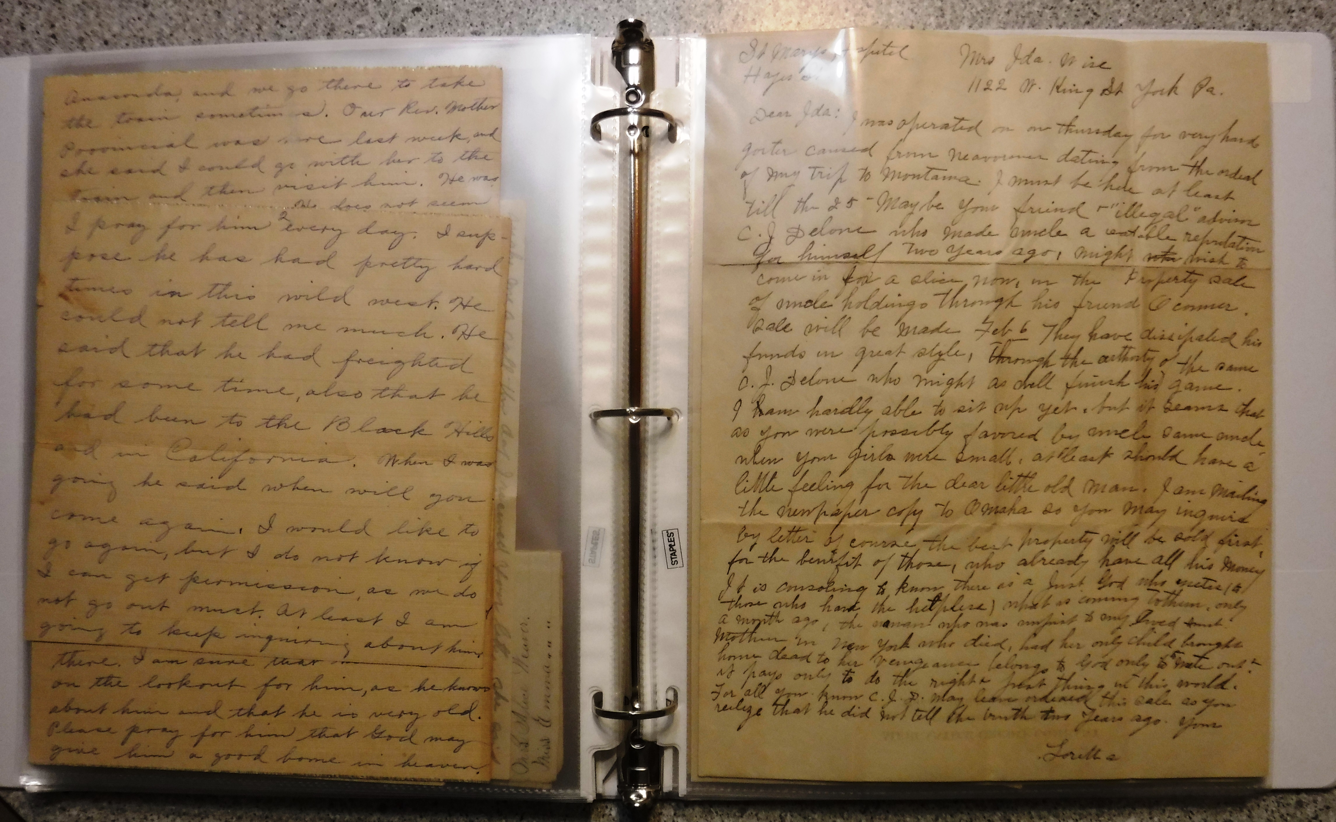 This binder (2018-14-4) contains 19th and 20th Century Personalcommunications, business letters and documents from the Simon/Anna Kuhn Collection. Most are posted to Noah Bevenour and daughter; Mary A. Bevenour.
