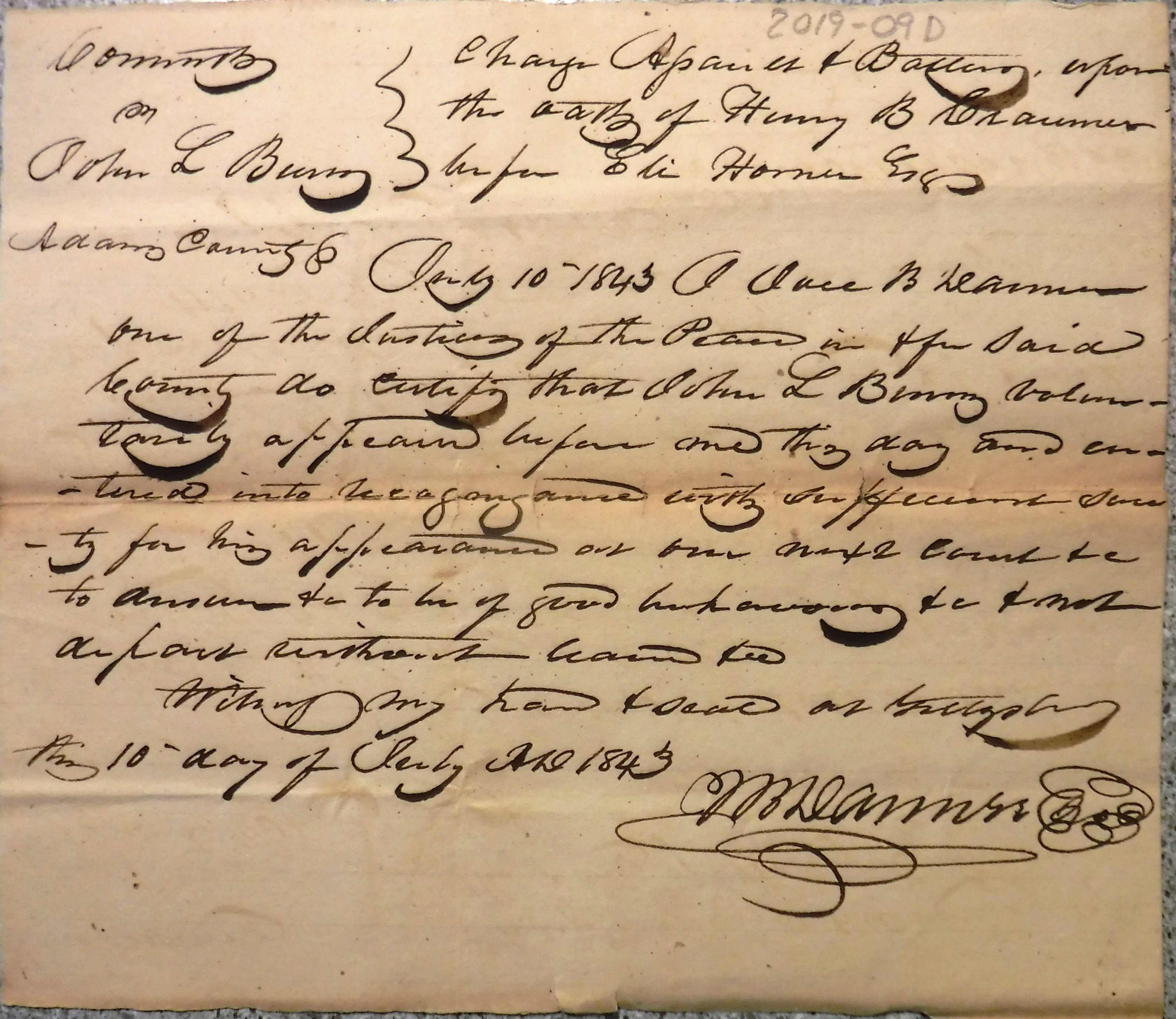 “Charge assault and battery upon the body of Henry B. Craumer…John L. Burns…”