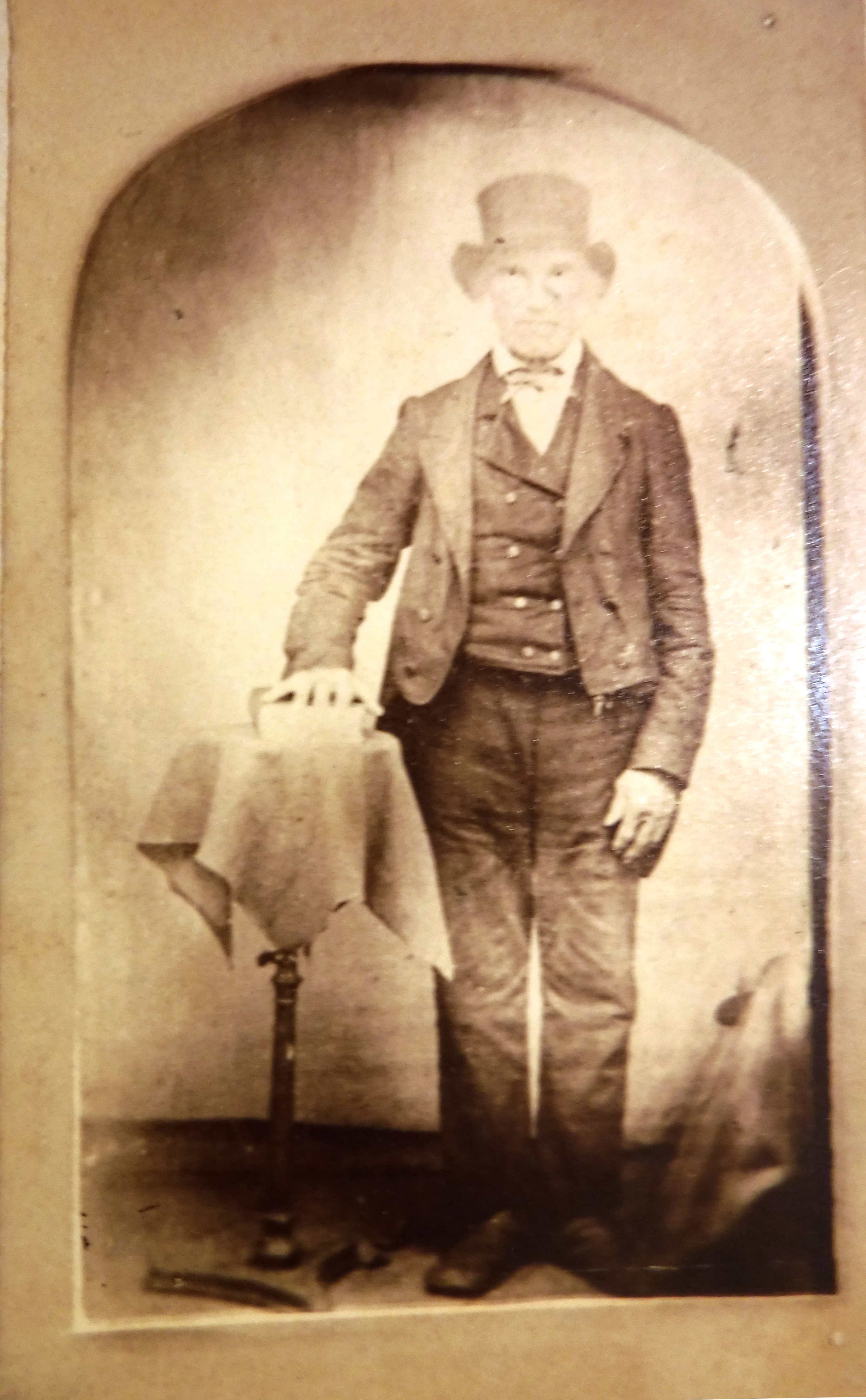 This CDV Photograph was part of a package of eleven similar pictures of other individuals, purchased as a lot at auction. All photos were back-marked: "H. J. Harman, Photographer, York Springs, Adams CO., Pennsylvania." On the back of this photo, handwritten in pencil, is the name "John Burns".