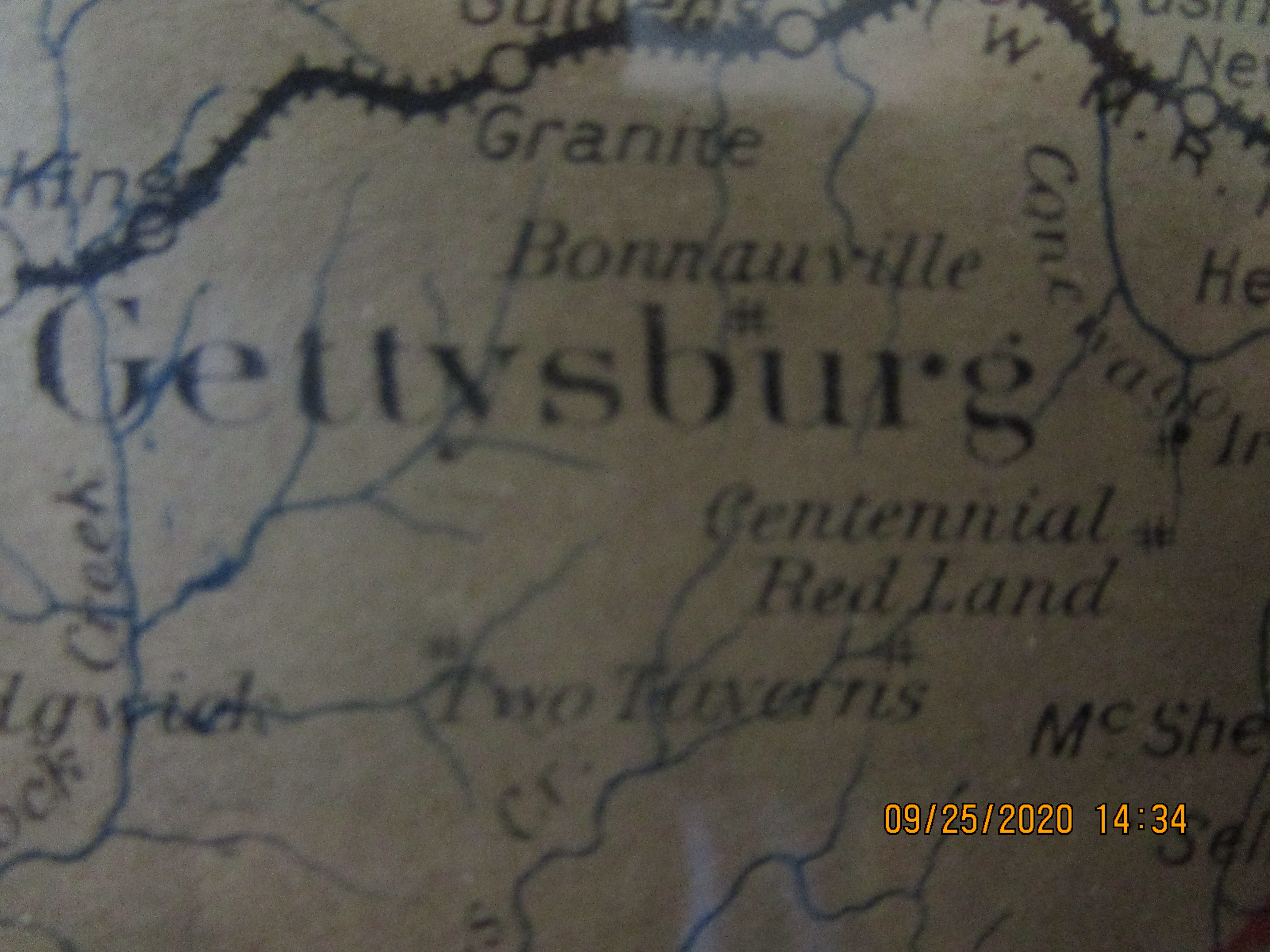 This map displays the various railroads running through Adams and surrounding counties. The closest tracks to Bonneauville, and the closest stop, was Guldens Station, about three miles north of the town.